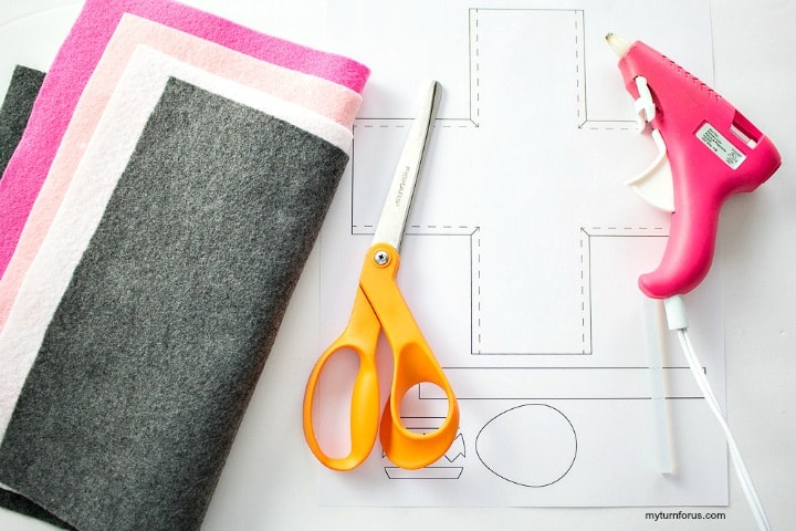 - Felt scraps in white light pink and dark pink (or any coordinating colors of your choosing)