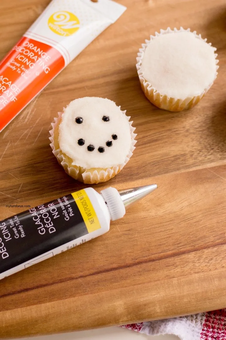 • Finish the remaining Snowmen Cupcakes. And allow to set up and then serve!