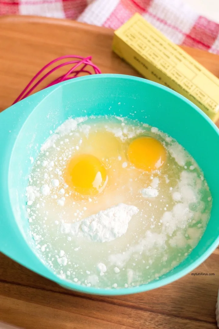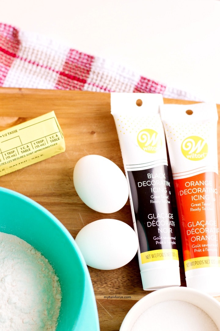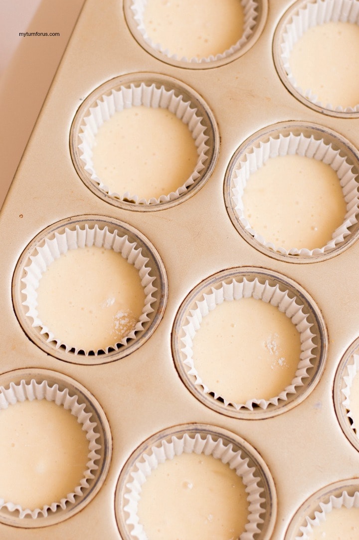 • Place the white cupcake papers in each of the cups of both cupcake pans. Then prepare the cake mix for the cupcakes according to package’s directions.