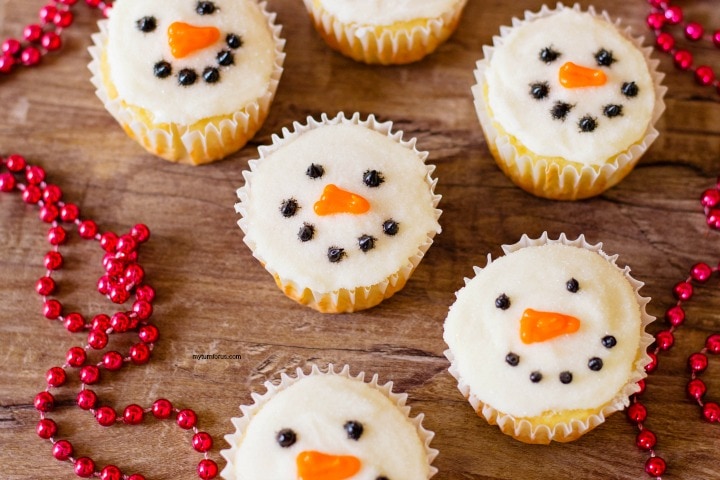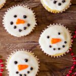 Make these super easy and super cute Snowman Cupcakes from a cake mix. Also you use a pre-made frosting to make the simple snowman cupcake faces.