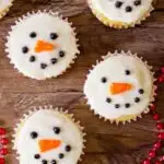 Make these super easy and super cute Snowman Cupcakes from a cake mix. Also use pre-made frosting to make the simple snowman cupcake faces.