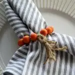 These Farmhouse Wood Bead Napkin Rings will make a very pretty seasonal decor item to dress up your table. These simple DIY Napkin rings add a nice punch of color to your place setting. And they can be used the entire fall season or on your Thanksgiving napkins.