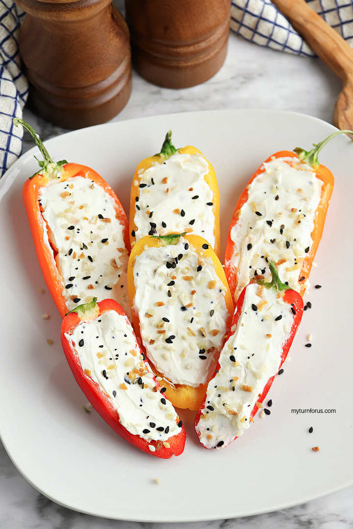 - Slice the bell peppers into slices then cut into squares and place on top of the football field dip lined up as football players