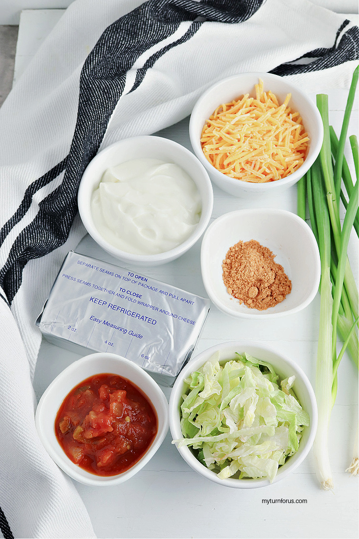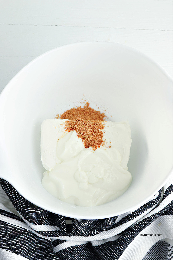 - In a small mixing bowl, mix the cream cheese, ½ cup sour cream, and the taco seasoning together until very smooth and very well combined.