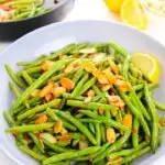 Discover a delightful way to savor fresh green beans with this Pan Fried Green Bean recipe. Toasted slivered almonds and garlic add a crunchy twist, while a squeeze of lemon juice completes the flavors. Perfectly cooked, green beans boast a vibrant color and a crisp-tender texture that’s a far cry from the overcooked, limp green beans of the past. This is a simple yet delicious stovetop green beans recipe, just right for your healthy meal plans.