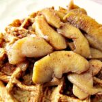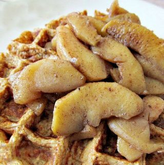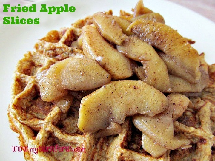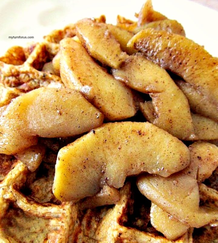 My hubby has always talked about his Mom’s fried apple slices that she served over pancakes or waffles in the morning. And I always thought they were stewed apples with a thick syrupy glaze. But I should have known my hubby better. They are apples cooked in a cast iron skillet with the flavor of cinnamon, not too sweet and not overcooked, but left with a bit of crunch in the center.