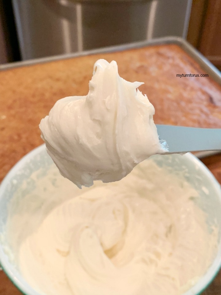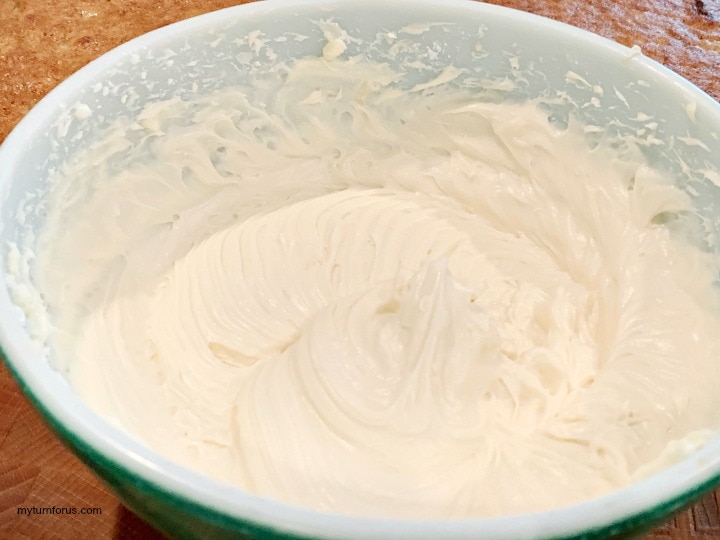 cream cheese frosting recipe, cream cheese frosting in a bowl
