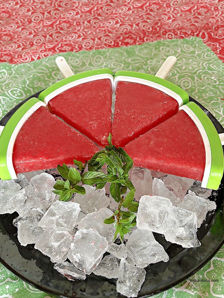 These watermelon mojito popsicles have the cool flavor of mint plus a bit of rum. This recipe makes eight (8) watermelon mojito popsicles using two watermelon slice molds . But if you don’t have one the mixture can be poured into other mold.