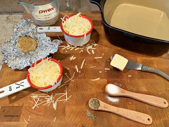It’s a great make-ahead garlic mashed potatoes casserole recipe. We prepare this creamy potato recipe ahead of time, then pop it into the oven about 20 minutes before serving. It’s an easy way to prevent that last-minute rush and your creamed potatoes always arrive on the table hot and steamy. It’s always nice to have a few casserole recipes or make-ahead recipes on hand. Especially on our major holidays when all the family is together.