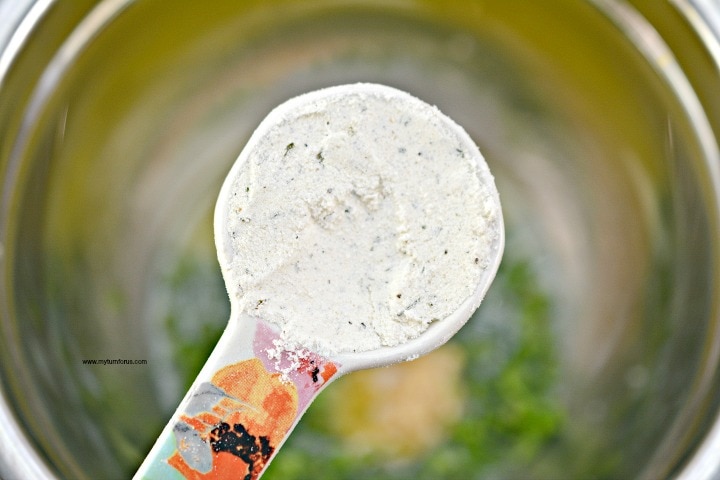 Add 1 ½ tablespoons of  Ranch dressing seasonings to the mixture.   If using those little envelopes or Ranch Seasoning there are about 3 tablespoons of mix in each package so use half of that.    Mix well.