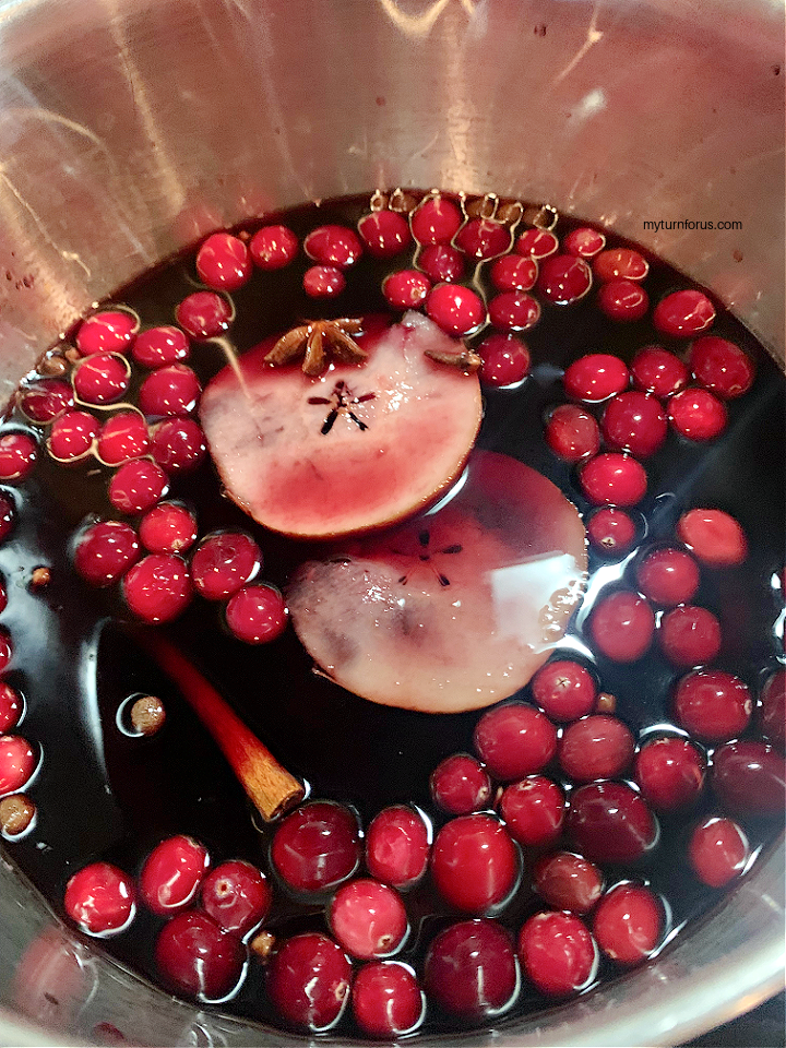 - Toss in 6 thin slices of fresh ginger (no need to peel) and a generous handful of fresh cranberries. The ginger brings that gentle, warming kick while the cranberries pop with tart, jewel-bright flavor—your mulled wine is already starting to smell like pure holiday joy!