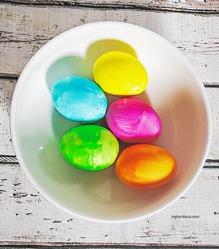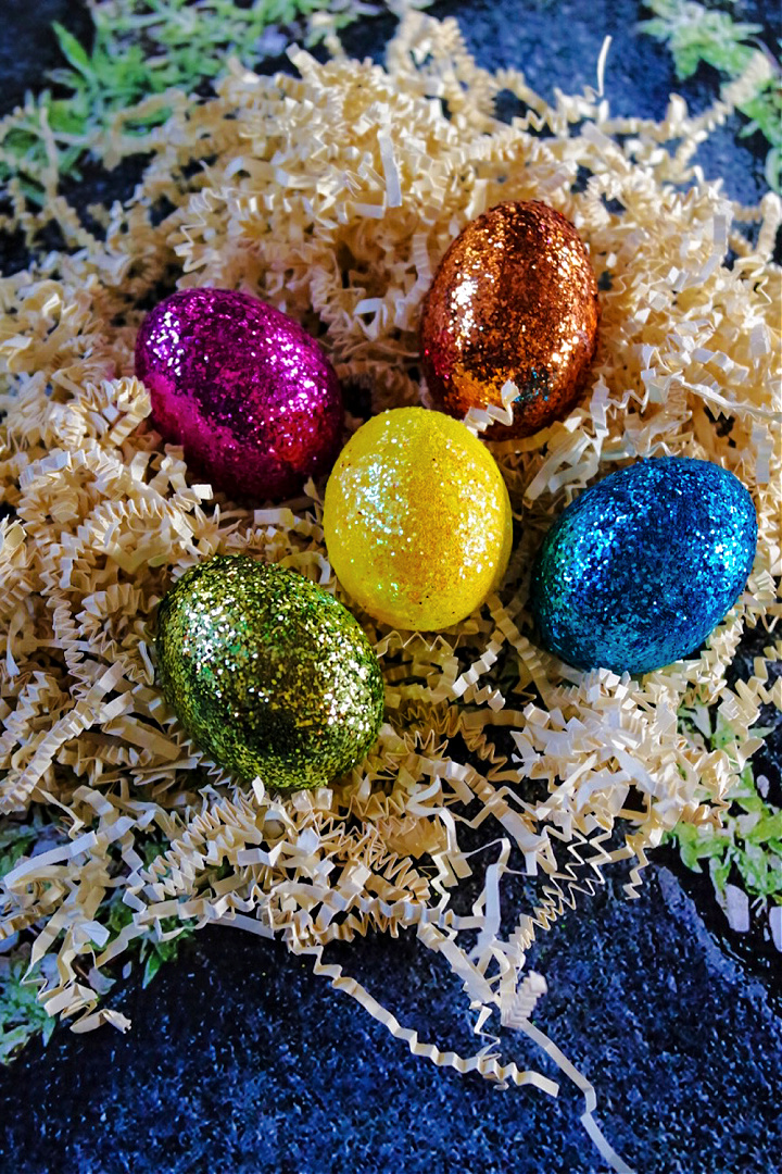 Allow the glitter eggs to dry for an hour. Now you can use them for all your Easter activities and Decorating (if using fake eggs).