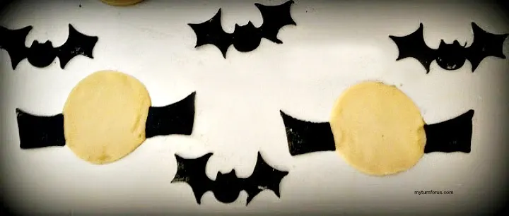 - Roll dough in portions to about 1/8- 1/4 inch thickness and cut with your choice of cookie cutters. (I even grabbed my Valentine’s Day lips cookie cutter and made vampire teetSo be creative and feel free to use your other cookie cutters in fun ways.