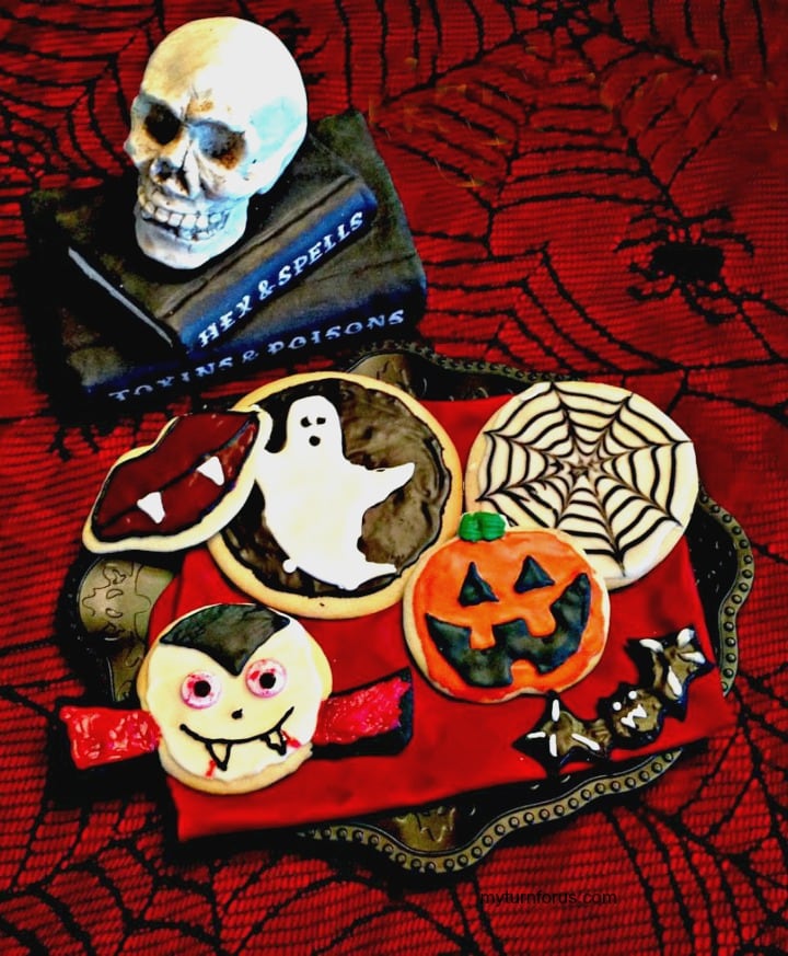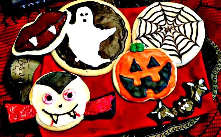 This is a recipe for Halloween cookies with royal icing by my daughter, Kristi. She and her daughter had fun making simple sugar cookies and decorating them with designs made with a recipe of royal icing with cream of tartar.