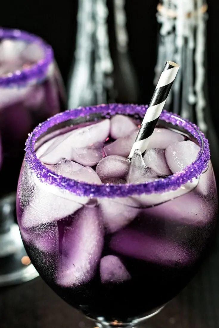 A perfectly purple cocktail with a purple hue from blue curacao, grenadine, and cranberry juice.