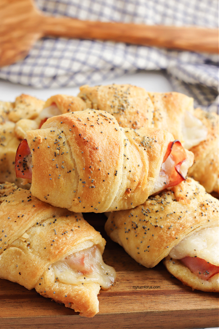 Keyword appetizers using crescent rolls, ham and cheese crescent rolls, ham and swiss crescent