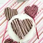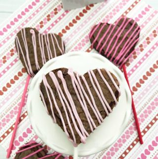 These Valentine brownies are heart shaped brownie cutouts on a stick with a candy drizzle. And these cute Heart Brownie Pops are so easy to make and would be fun to give as Valentines.