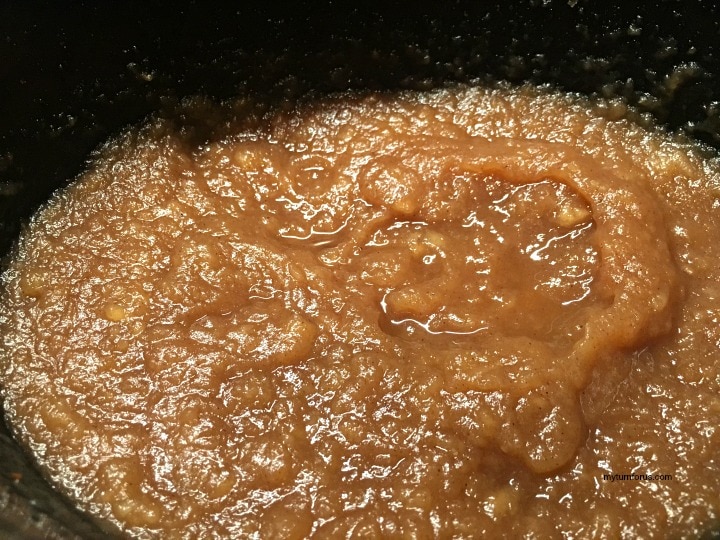 Use an immersible blender and puree the cooked apples and spices until well blended.  A regular blender or food processor could also be used.  It’s just easier to use the immersible blender since the apple mixture does not need to be removed to puree it.