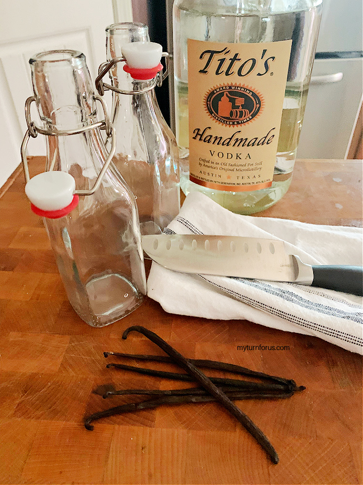 - 8 ounces 80 proof vodka or can use use bourbon, brandy or rum as long as they are 80 proof