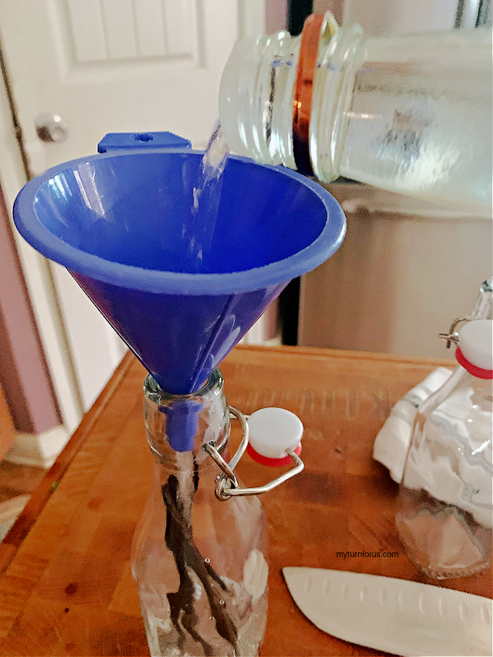 - Place stopper over the top of the bottle and give it a few shakes. Place in a cool dark place like the back of your pantry and give it a shake about once a week.