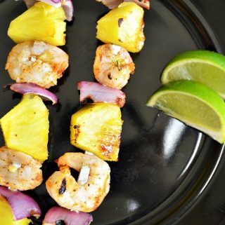 These Shrimp Skewers are so delicious with this easy marinade. They have both the flavors of chili and lime and the grilled pineapple is so sweet and adds an amazing contrast. An indoor grill could also be used if the weather outside prevents you from grilling these Pineapple Shrimp Skewers outside.