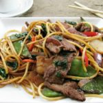 Did you know that eating stir fries can help you loss weight?  But how about Beef Lo Mein?   Can a Beef Lo Mein be healthy but also quick and easy?  Even though most stir-fries are loaded with lean protein and fresh vegetables, eating restaurant dishes can defeat our goals of healthy eating.  We need to be extra careful in choosing our dishes in restaurants based on the ingredients and to also avoid some of the pitfalls of added salt and sweetened sauces.