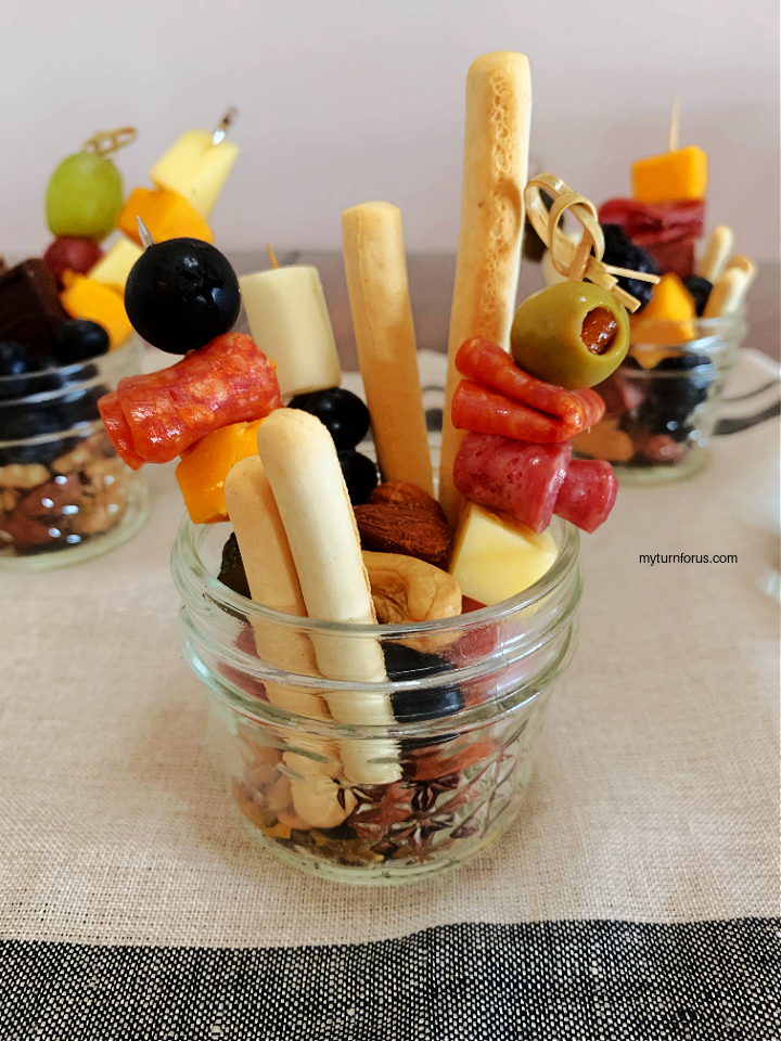 Make everyone an individual charcuterie cup for your next party. These “jarcuteries”are like a personal charcuterie board in a mason jar. Y0u could make them either savory with meats and cheeses or you could make these individual charcuterie jars in a sweet version.