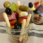 Charcuterie boards have been all the rage for the last few years and we do love them. And today we are taking that popular trend and making personal charcuterie cups. So instead of a large board of your favorite antipasto treats, you could serve individual charcuterie cups or jars. These “Jarcuteries” contain typical antipasto ingredients or you could create a sweet version with cookie sticks, fruit and chocolate.