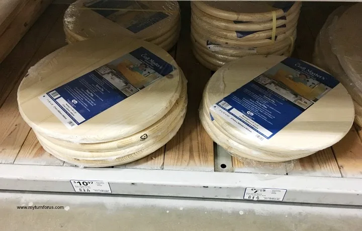 - 15-18 inch unfinished wood round, find them here in case your local hardware store doesn’t have them (just make sure they are unfinished with no wood stains since they will be used for food, see note below**)