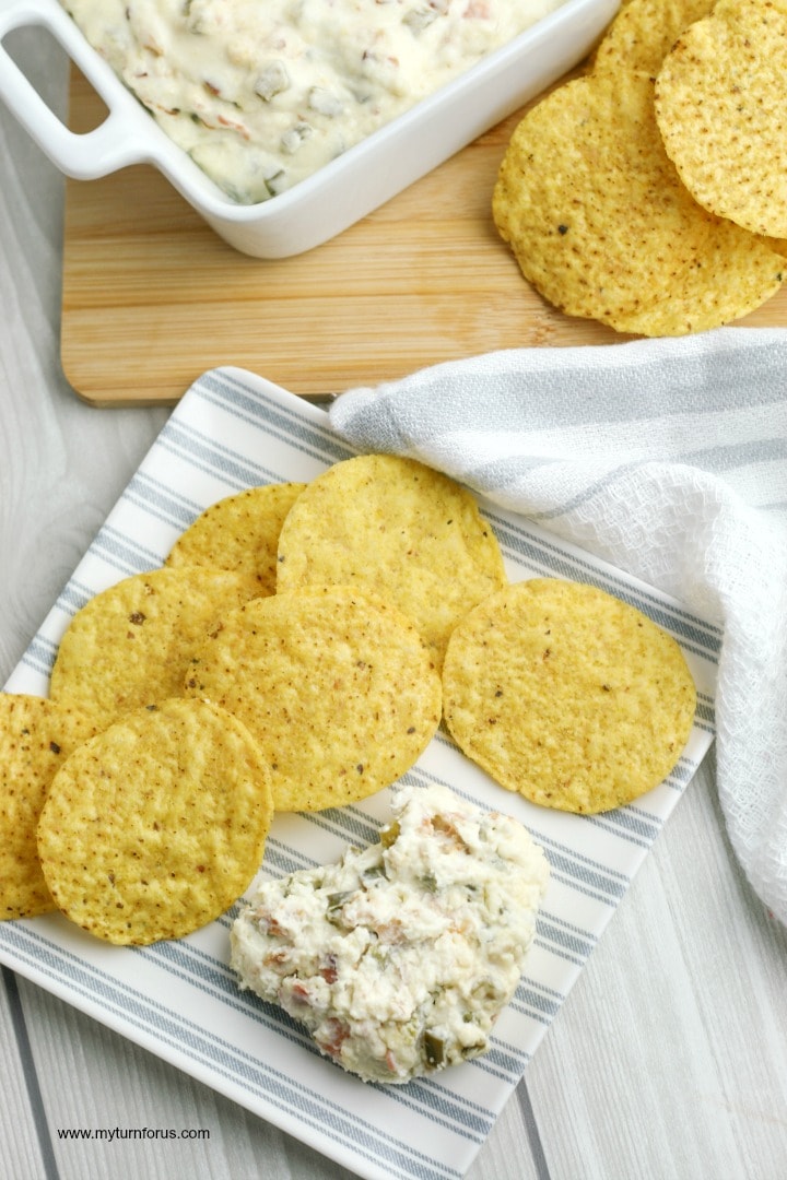 Finish this dip by grating 2 cups of mozzarella cheese and adding on top of the other ingredients in the crockpot. Cook on low for 2 hours, stirring the jalapeño dip halfway through the cooking time.