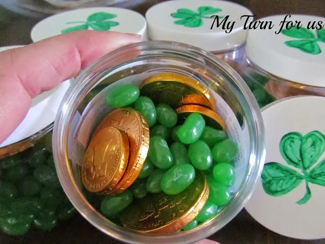 • Stamp the top Lids with a Green Clover or paint a green clover on the lids