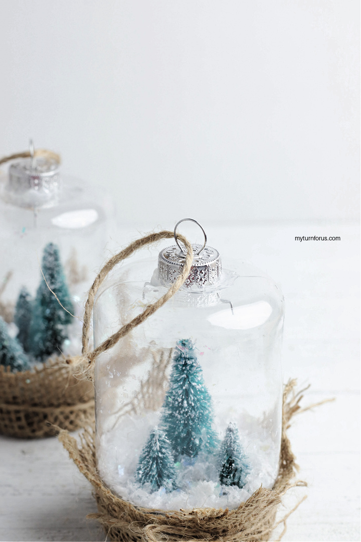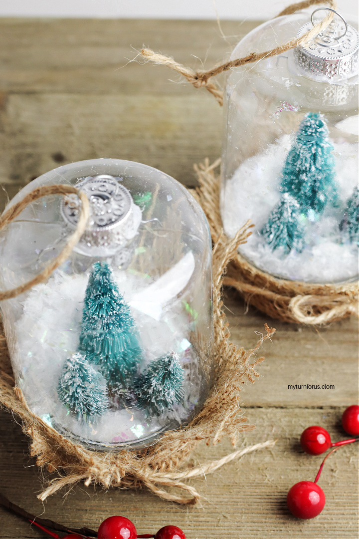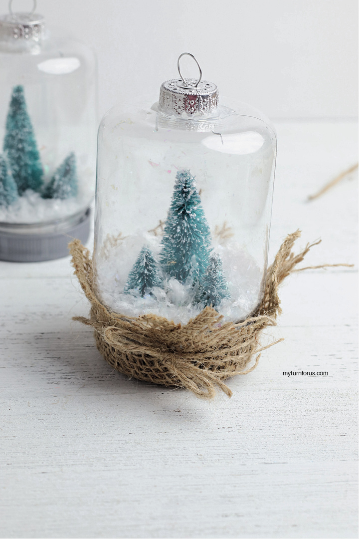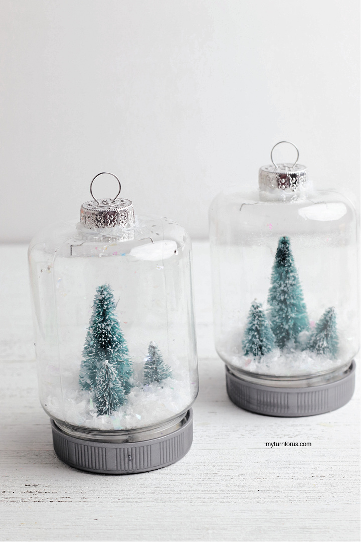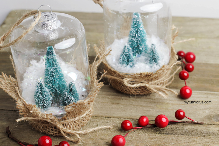 Now you are ready to hang your mini snow globe Christmas ornaments on your Christmas Tree. But you could also use these as table centerpiece, on a wreath, hanging from or sitting on the fireplace mantel, or as a Christmas present toppers.