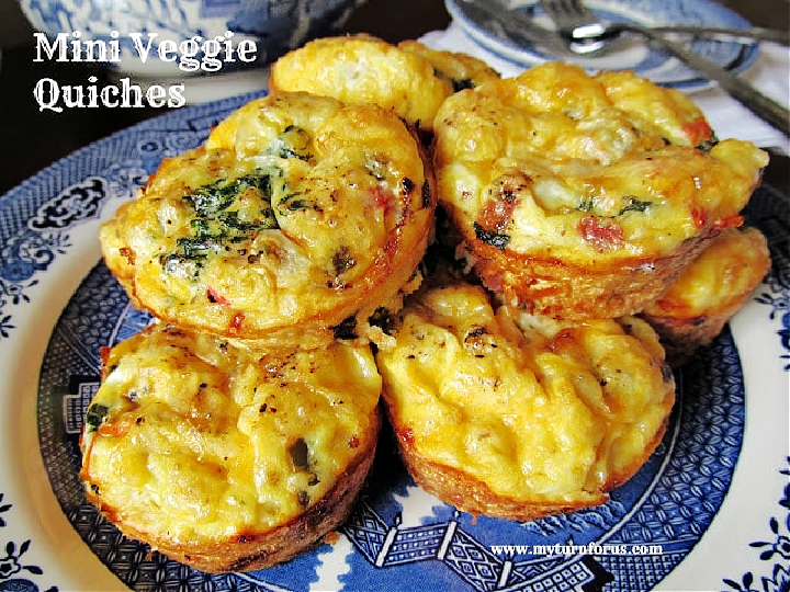- Place in preheated oven and bake for 25 to 30 minutes until firm. Remove your crustless mini vegetable quiches and allow to cool for 5 minutes before removing from muffin tin.