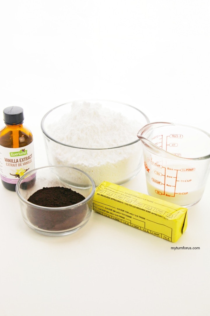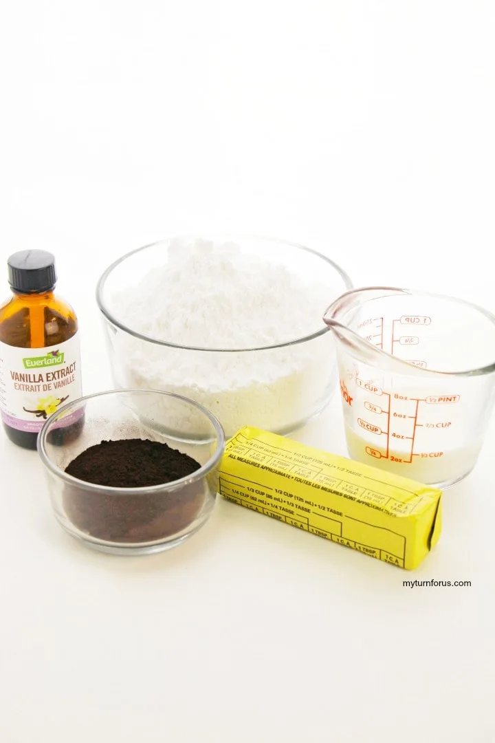 - Combine the butter, milk, 4 Tablespoons of cocoa powder and 4 cups of the powdered sugar in a large saucepan and set over medium heat. Bring the mixture to a boil for 4-5 minutes, then remove from heat and stir in the vanilla extract. Taste and adjust with additional cocoa powder and sugar, if desired. Pour the hot ganache over the brownies.
