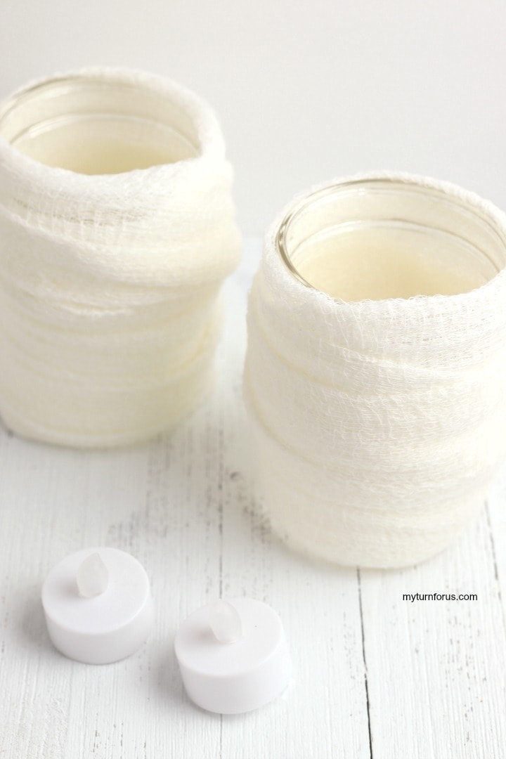 Just a note, make sure you use plenty of gauze so the little mummy candles are well covered.