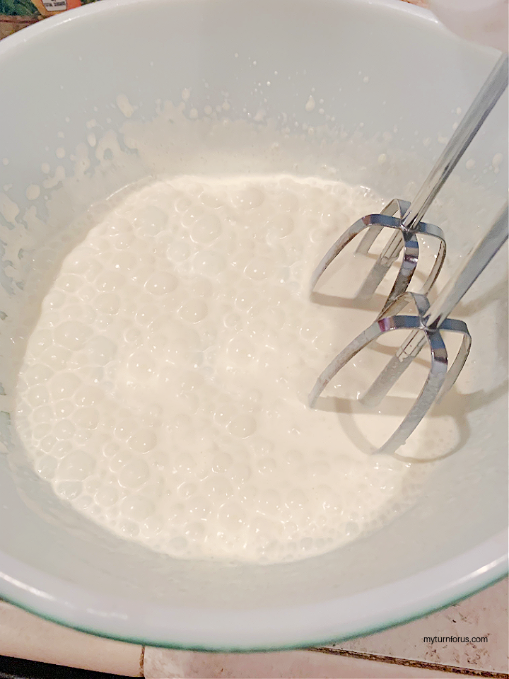 • Beat the egg and cream mixture with an electric mixer until frothy, about 1 minute.