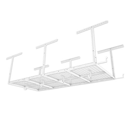 One of the best ways to keep your garage organized is by installing overhead storage. This Storage Rack will hold all of your seasonal items while also getting them up and out of the way until you need them. And the handy hooks make it easy to hang everyday items, like bikes and strollers, keeping them off the floor but still within an arm’s reach when you’re ready to use them.