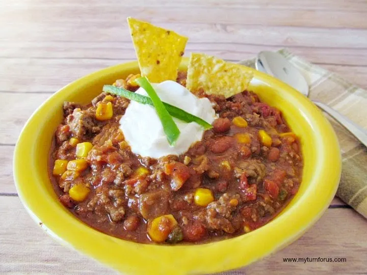 7 can Taco Soup Recipe that can be made in the slow cooker or on the stovetop. It’s an easy one-pot 7 can soup that is easy and comforting soup.