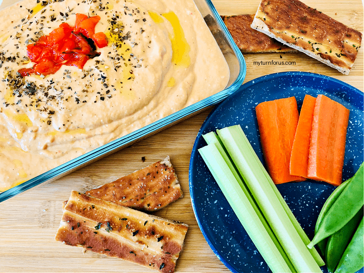 This roasted red pepper & feta hummus is lower in bad fats and higher in healthy nutrition but it really rocks those flavors we love.