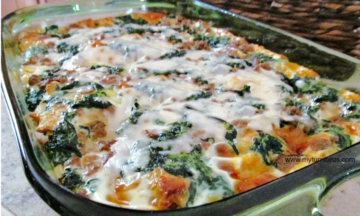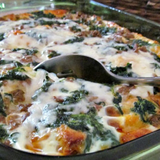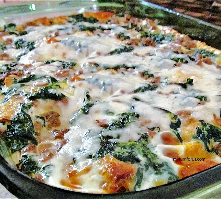 This sausage egg spinach casserole is a delicious overnight breakfast casserole. And it is rich with sausage and mozzarella cheese but it also contains the healthy addition of spinach.