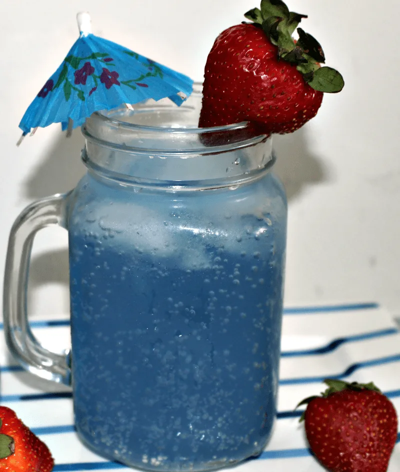 This is a classic blue cocktail that will add beautiful blue color to your holiday table. A giant ice ball is sure to keep this drink cold and refreshing for that summer cookout.
