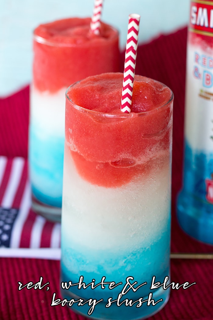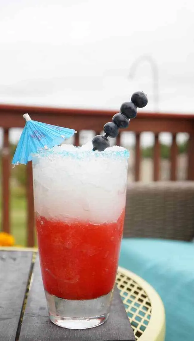 Make a slushy that has all the colors of this patriotic Holiday but in a frozen form! And it’s loaded with different delicious flavors. As you might have guessed this icy cocktail is totally on our 4th of July cocktail menu.
