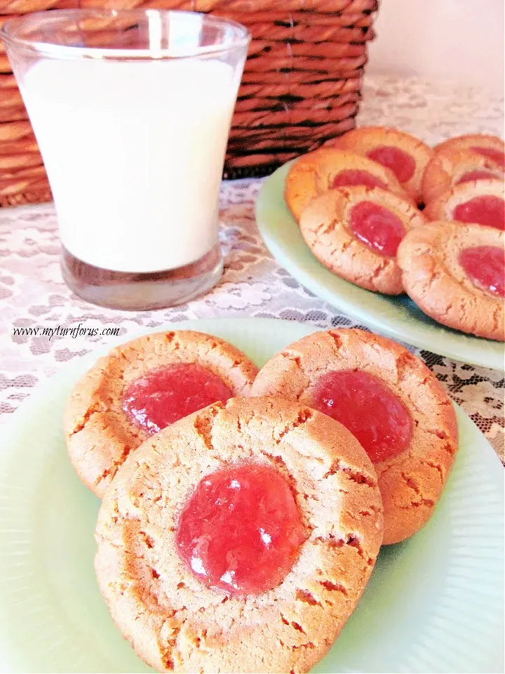 We made these peanut butter strawberry jam cookies but you could use any of your favorite jelly or jam.