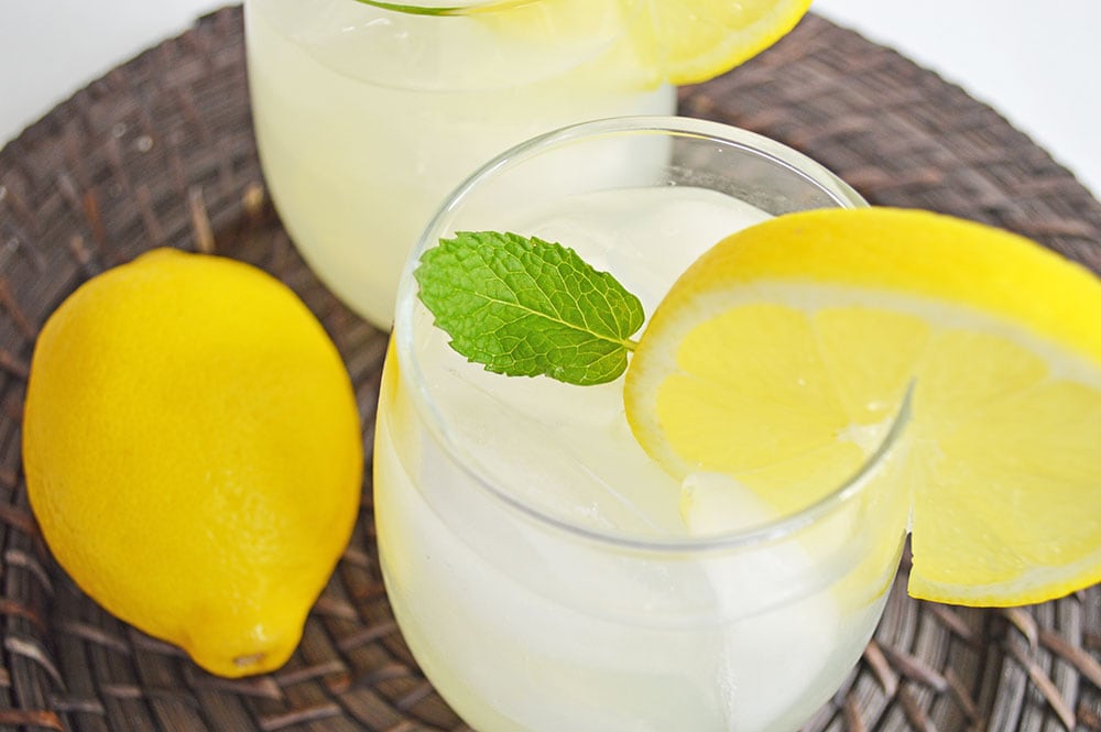 Garnish with fresh mint leaves and lemon slices.