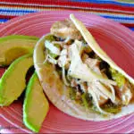 This is the simplest green chile pork carnitas recipe ever. You can make dutch oven carnitas with green chile sauce and green chile. Then serve these green chile carnitas in a tortilla topped with cheese with avocado.