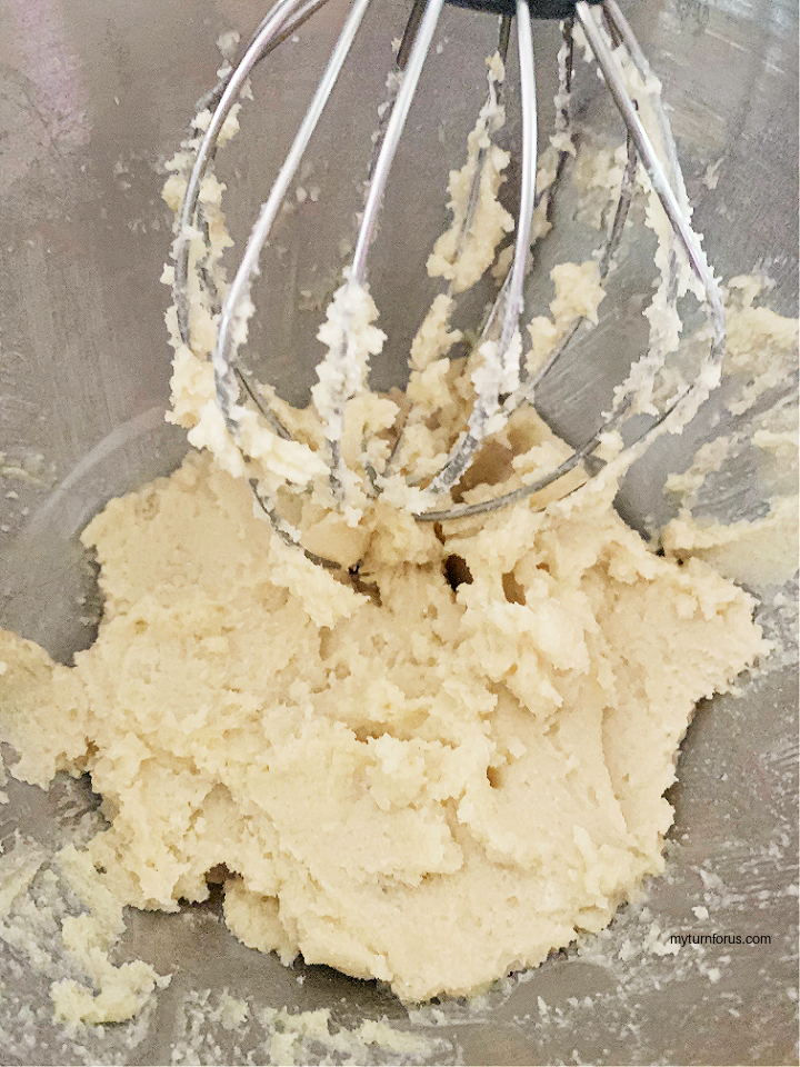 - Preheat oven to 350° F. Line a 9 X 13 pan with aluminum foil or parchment paper and spray with a cooking spray. Add softened butter, brown sugar and white sugar to a mixing bowl. Mix until light and fluffy.