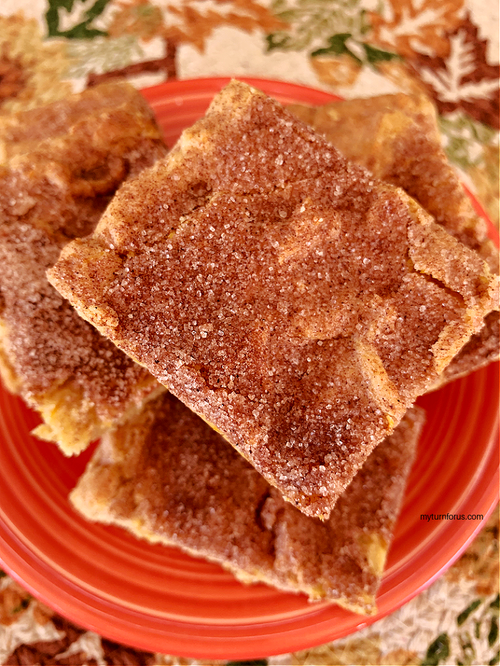 Click HERE to save this pumpkin snickerdoodle bar recipe to Pinterest