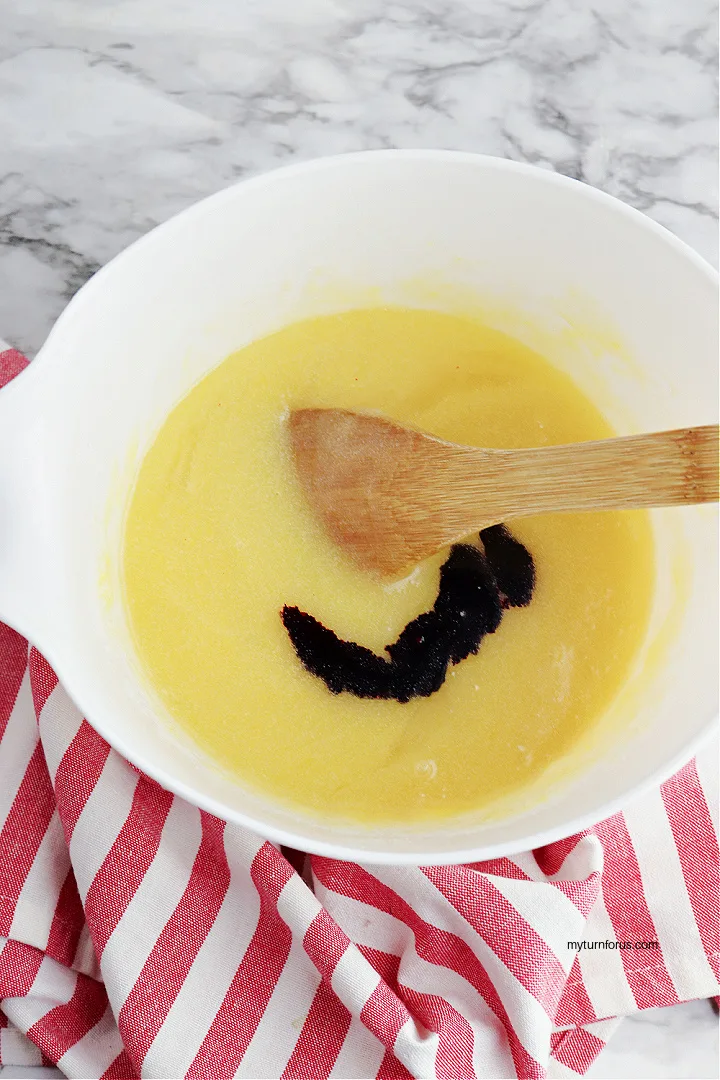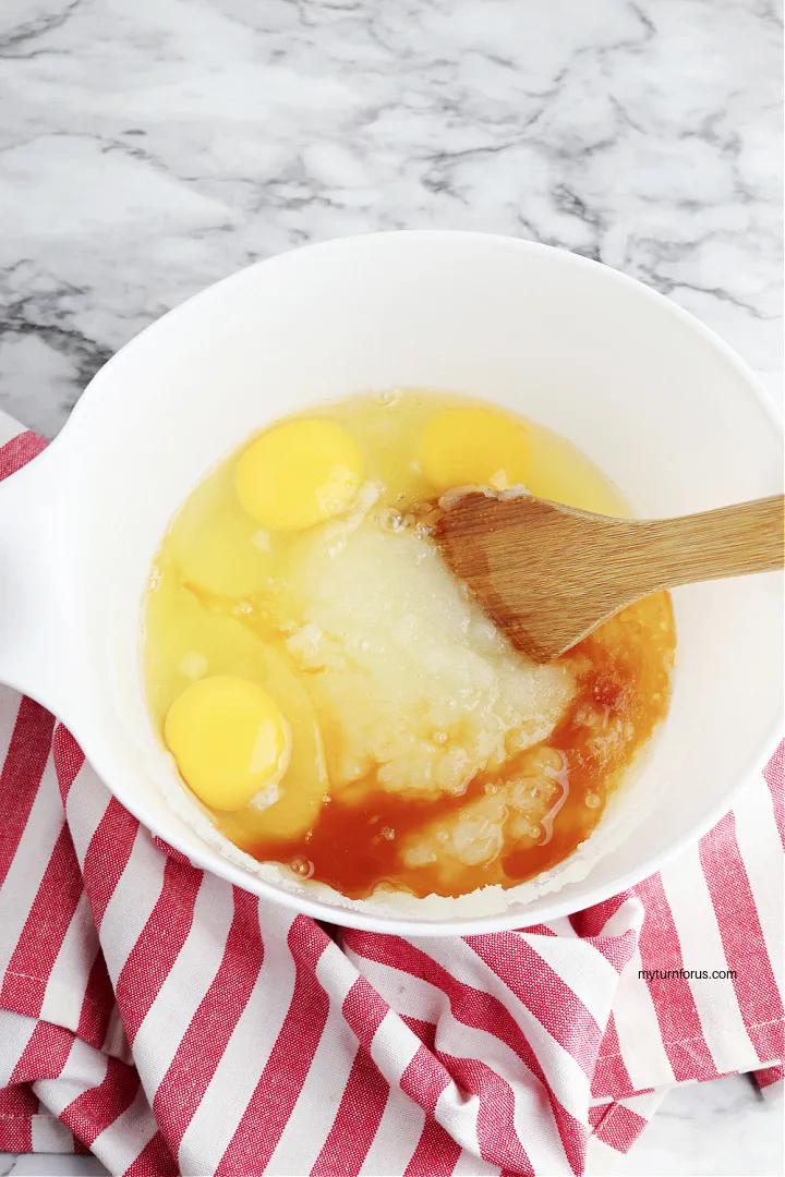 - Add the eggs and vanilla extract to your mixture, and mix until light and fluffy.
