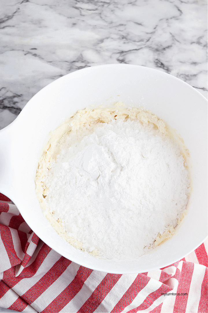 - Add the powdered sugar and milk to the butter mixture and beat. Continue beating until completely combine, scraping sides as needed.