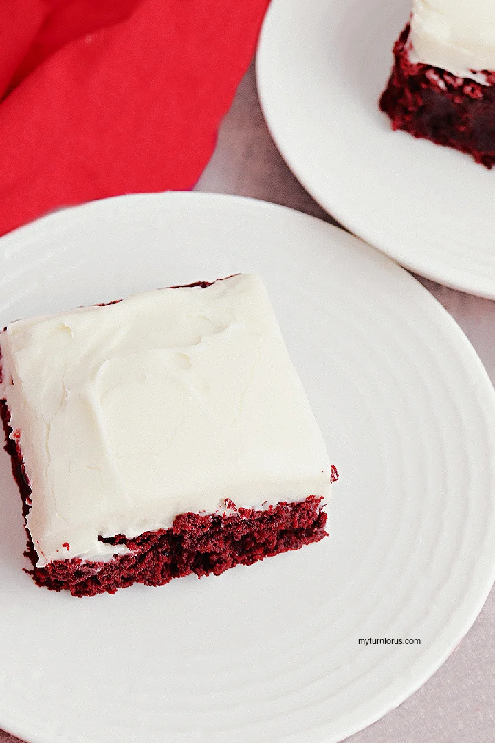 Click HERE to save this red velvet brownies cream cheese frosting recipe to Pinterest.